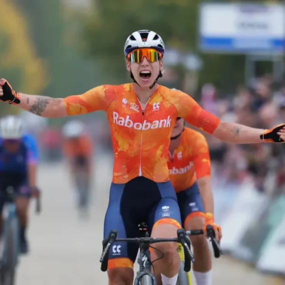 Lorena Wiebes conquista o título mundial de gravel em Limburg com vitória no sprint sobre Marianne Vos. Equipe holandesa domina completamente a prova feminina elite, ocupando 7 das 10 primeiras posições. Drama nos últimos 500 metros quando Van Anrooij é alcançada após fuga solitária de 12km.
